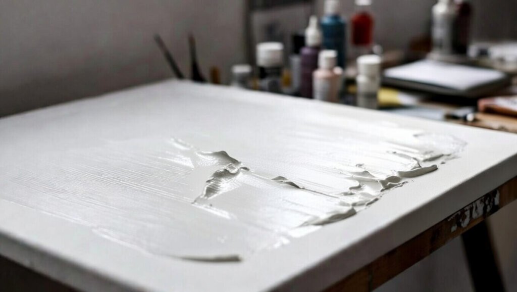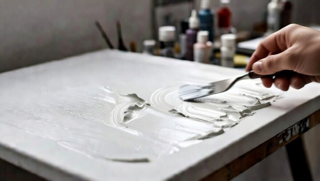 Make sure your canvas is ready. If it’s raw, you might want to apply a coat of gesso. That helps the texture medium adhere well.