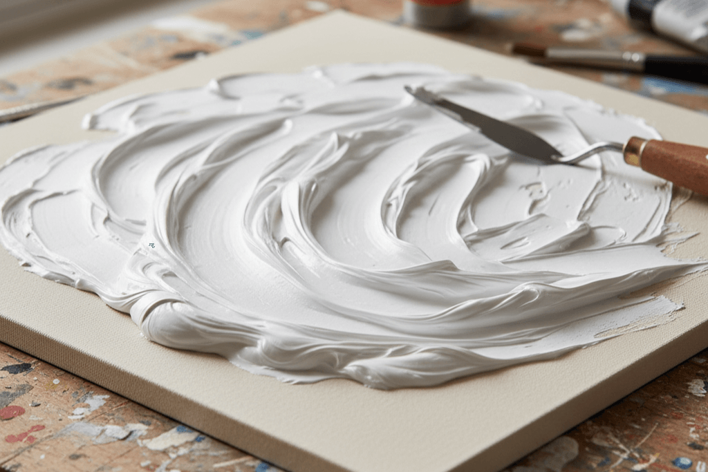 Modeling paste is thick, white, and sculptural. You apply it to canvas first, sculpt shapes and ridges, and after it dries, you paint over it. It’s a favorite for makers who want to build dramatic textures or abstract 3D patterns.